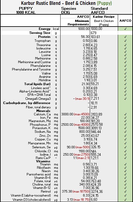 - This formula is developed in order to meet the Association of American Feed Control Officials (AAFCO) dog food nutritional profile standards for adult dogs and puppies. (Official AAFCO comparison charts provided in photo gallery)